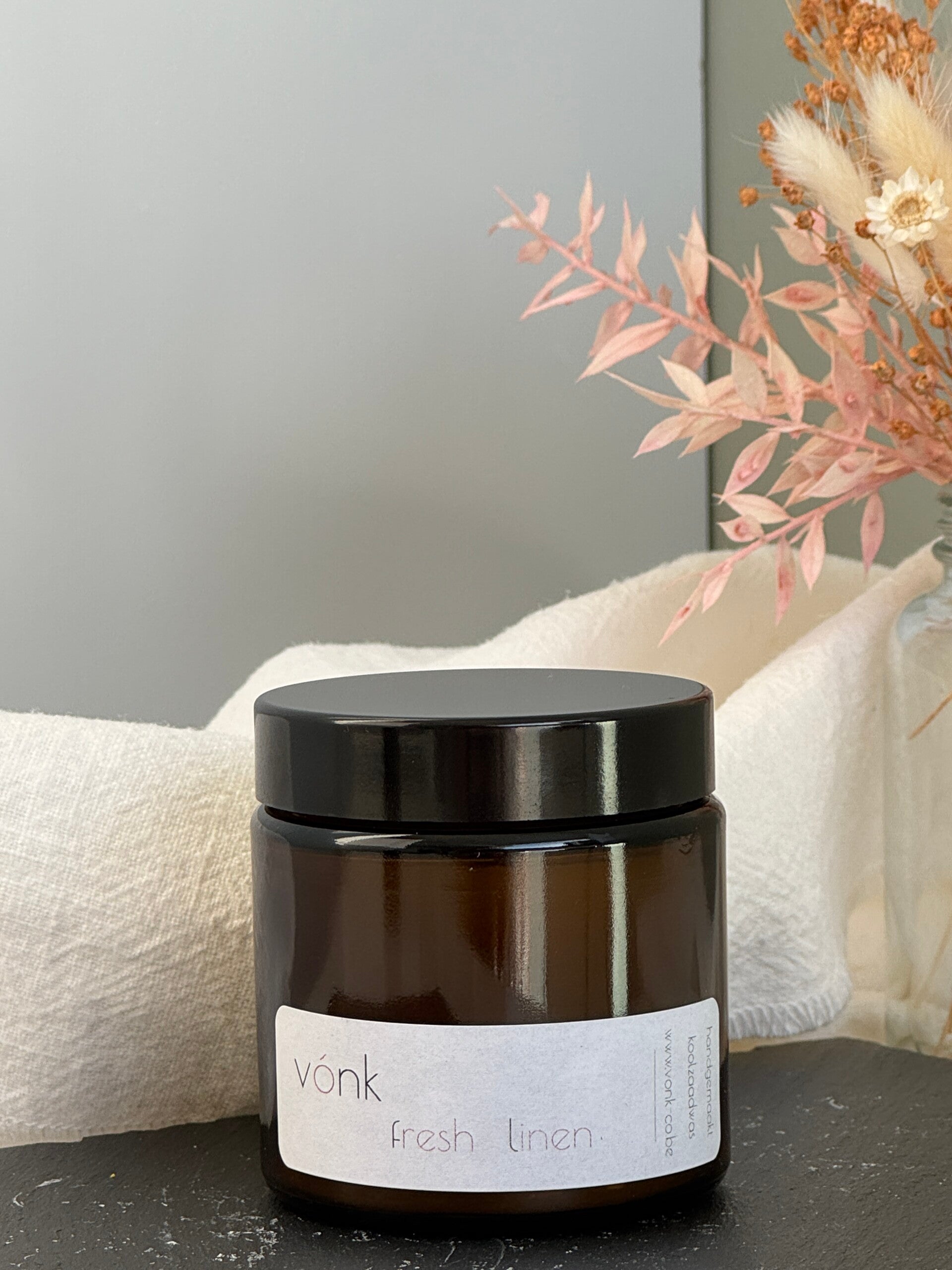 Kaars is gegoten met een mix van koolzaadwas en zonnebloemwas: